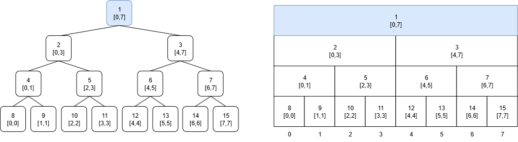부모노드의 범위는 왼쪽 자식노드와 오른쪽 자식노드의 범위를 합친 것이다.