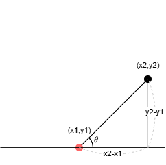 여기서 각도는 \(\theta=\arctan(\frac{y2-y1}{x2-x1})\) 로 구할 수 있다.