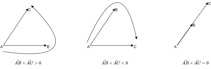\(\vec{AB}\times\vec{AC}<0\)이면 점 A,B,C가 시계방향(CW)