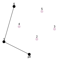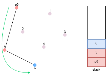 스택에 길이가 2보다 작으므로 5번점을 스택에 넣어준다.
