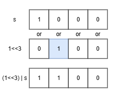 만약 set에 포함시키고 싶다면 s와 (1<<i) 를 or연산을 해주면 된다.